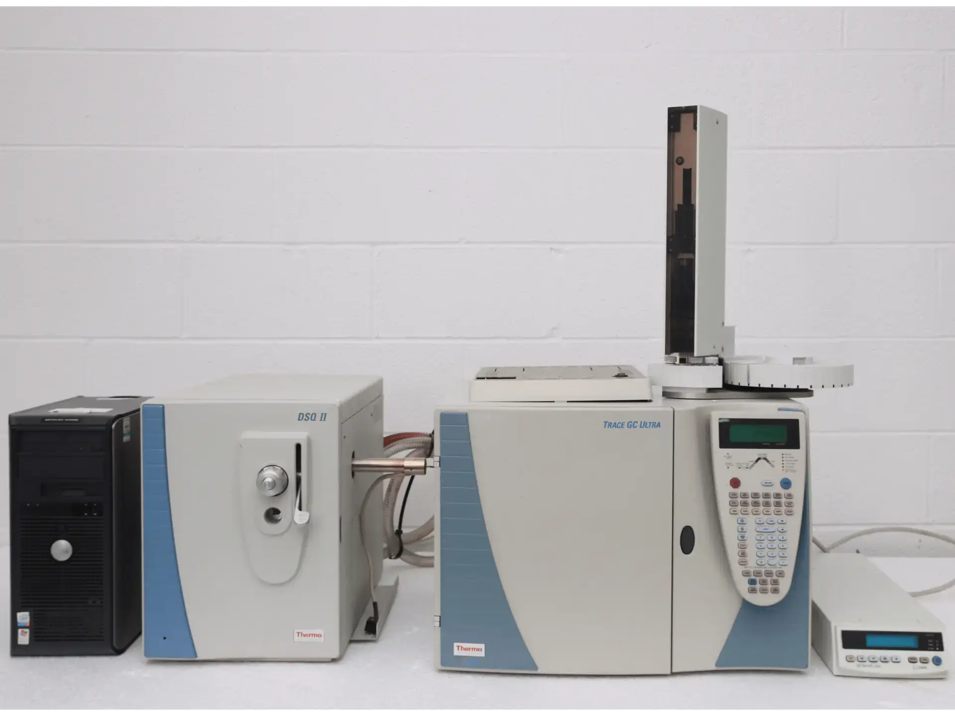 Multi-channel gas chromatograph with DSQ II mass spectrometer, AS2000 Autosampler and ThermoQuest controller, and PC.