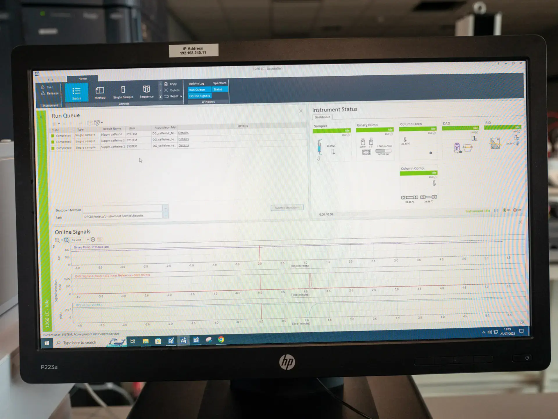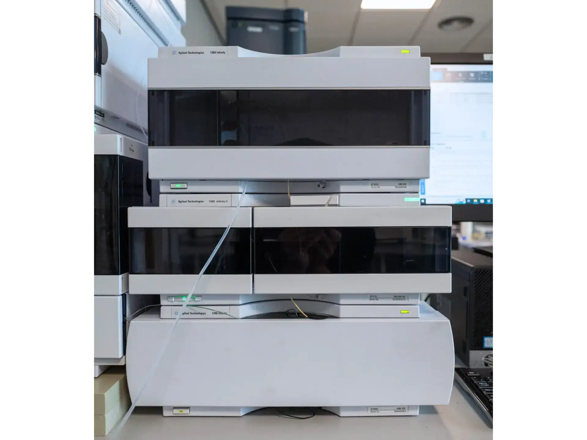 Also included is a 1260 Infinity II Diode Array Detector (G7117C DAD HS), for scanning samples with a range of UV and visible light wavelengths.