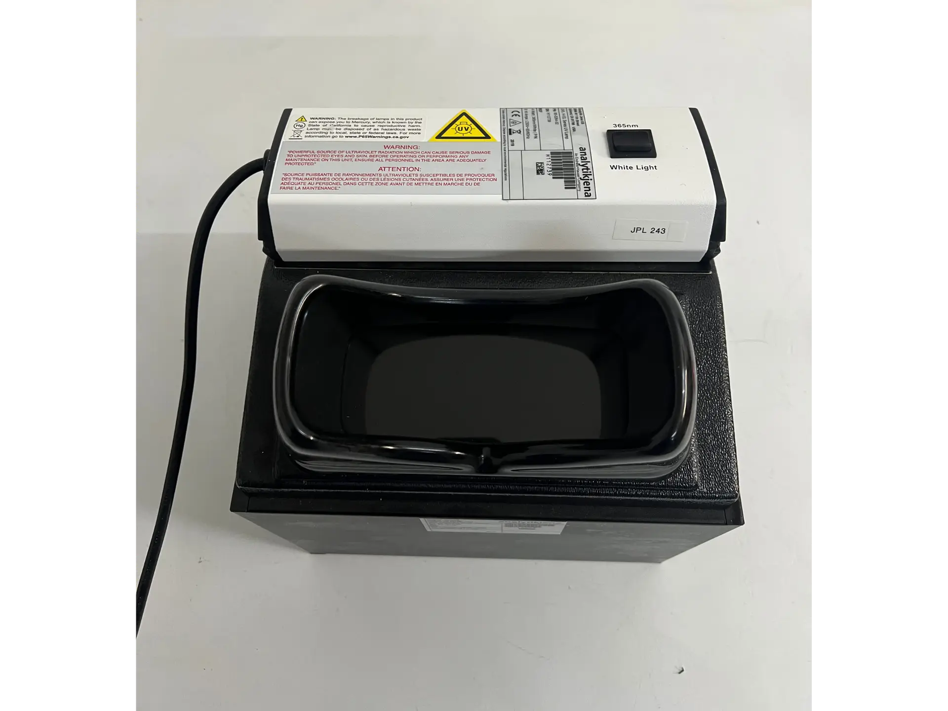 The Analytik Jena Mini UVP Chromato-Vue Cabinet (Model: C-10E4) is a compact solution for UV fluorescence analysis in laboratories and research environments. Designed to provide a controlled, darkened viewing area, this UV viewing cabinet enhances sample visualization while ensuring user safety with its contrast control filter, which absorbs UV light to protect the eyes. With interior dimensions of 254 x 178 x 229 mm, the Mini UVP Chromato-Vue Cabinet is compatible with 4-watt EL lamps, delivering uniform illumination for applications such as thin-layer chromatography, forensic analysis, and gel documentation. Its lightweight access curtain and rubber viewport effectively block external light, ensuring clear, high-contrast observations.