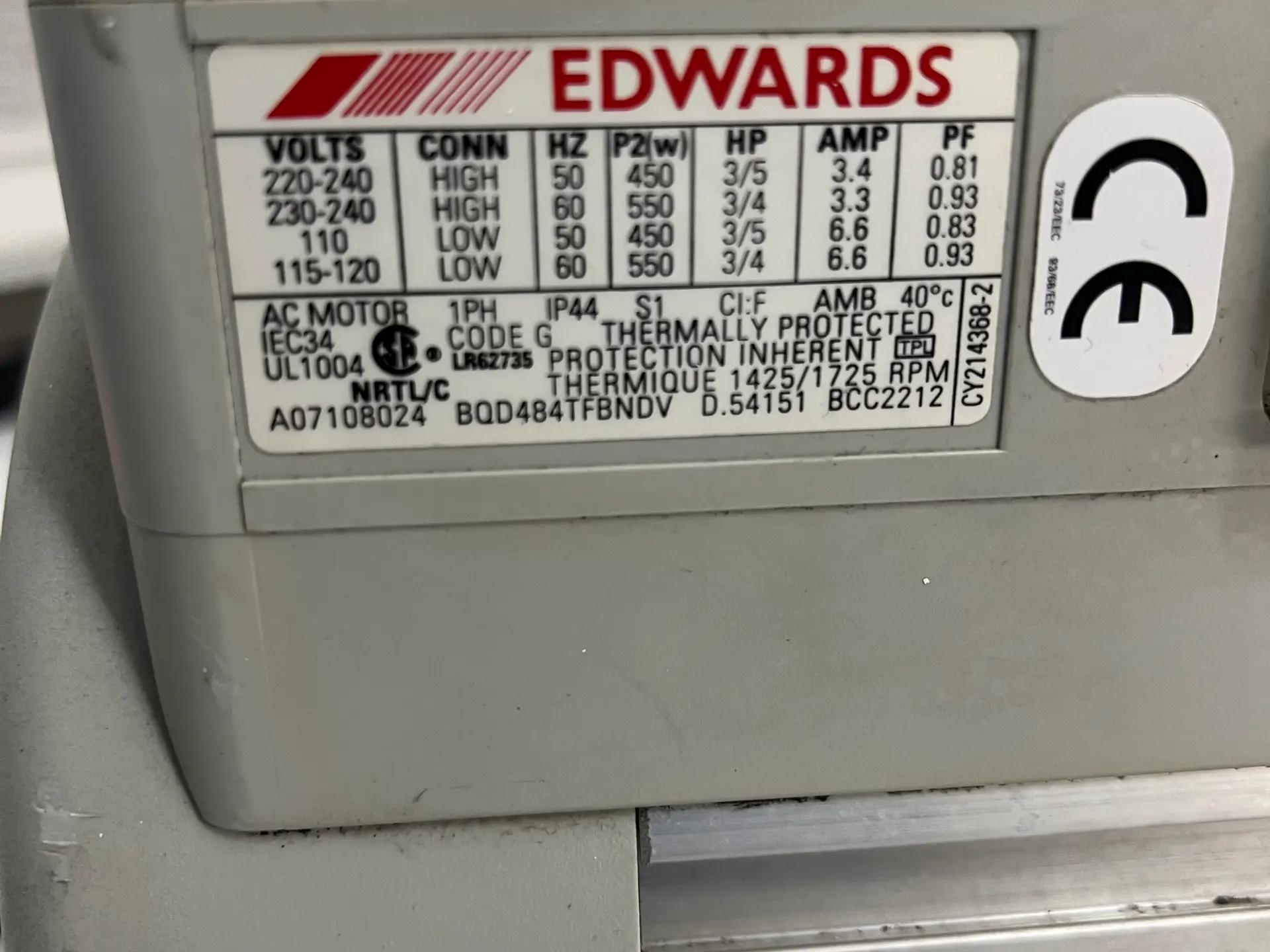 Equipped with NW25 inlet and NW25 exhaust connections, the RV12 integrates easily with standard laboratory and industrial systems. Operating at a rotational speed of 1,420 rpm, the RV12 ensures smooth and stable operation with minimal noise, contributing to a quieter working environment. Its oil-sealed design helps maintain a clean vacuum environment, while offering the durability needed for long-term, efficient performance. The compact design and user-friendly features make the Edwards RV12 a valuable tool for applications that demand high-quality, consistent vacuum generation.