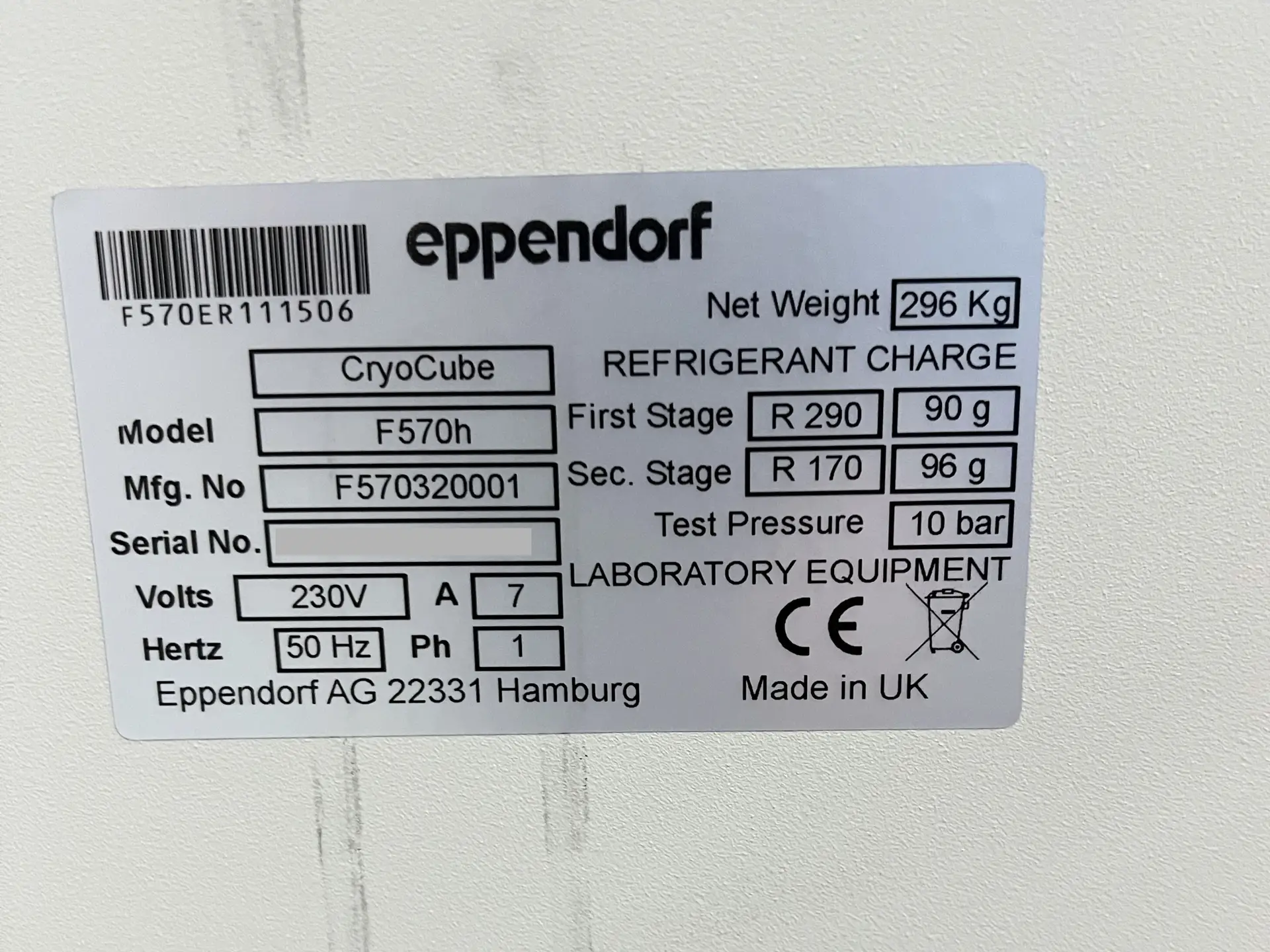 Data Sheet for the Cryo Cube F570h ULT Freezer
