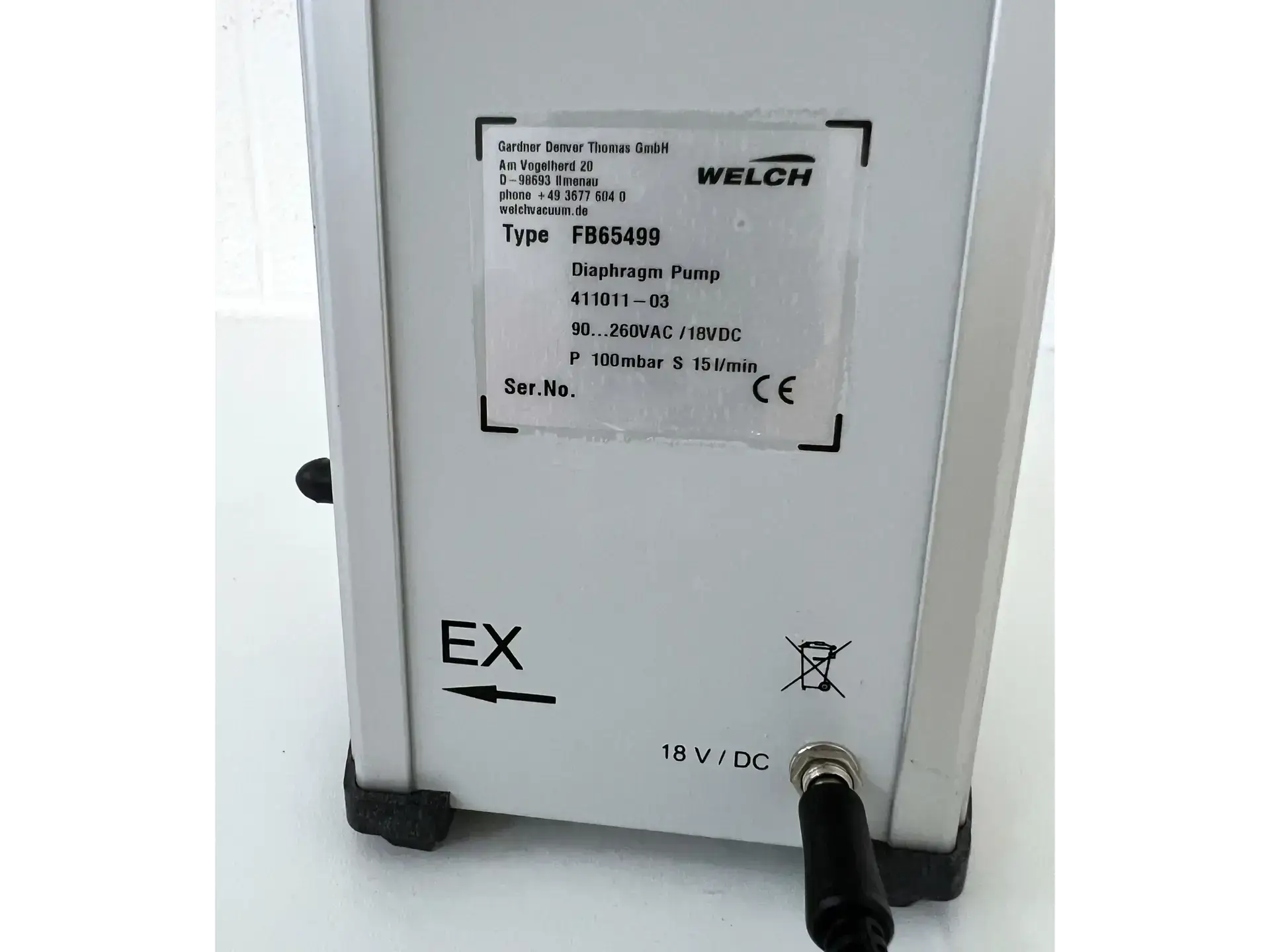 Designed to be compact and portable, this diaphragm pump can be used in the lab or out in the field. Low vibration and quiet operation ensure unobtrusive performance . Features include a maximum pressure of 2.5 bar, air displacement runs at 15 L/min and the max vacuum is 100mbar.