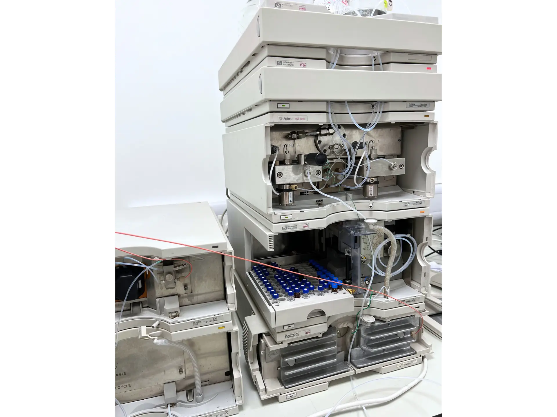 The Hewlett Packard 1100 HPLC is a high performance liquid chromotography system, designed to produce reliable results in real time. A user friendly, precision instrument, the 1100 is well suited to laboratories working in quality control, routine analysis and method development. Industries such as pharmaceuticals, food safety, and environmental science depend on HPLC systems like this to fulfill their analytical requirements.