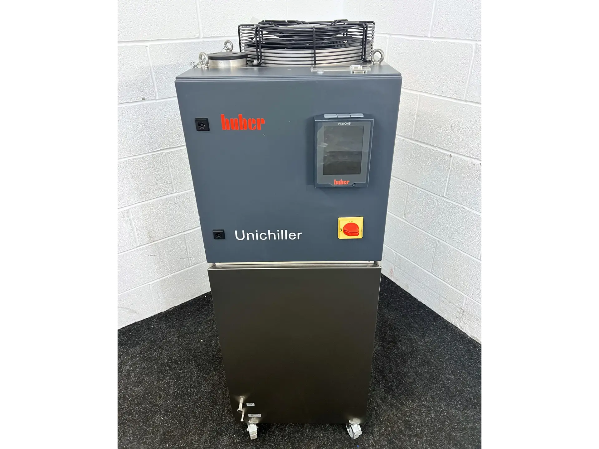 The Huber 040T UniChiller is a high-performance recirculating chiller designed for precise temperature control in laboratory and industrial applications. It operates over a wide temperature range of –10 °C to 40 °C, ensuring reliable cooling for sensitive equipment. The chiller features a powerful built-in circulation pump that maintains efficient fluid flow throughout connected systems, while preventing pressure buildup. Its digital filling-level indicator allows easy monitoring, and the Pt100 sensor connection provides flexible integration for external temperature measurements.