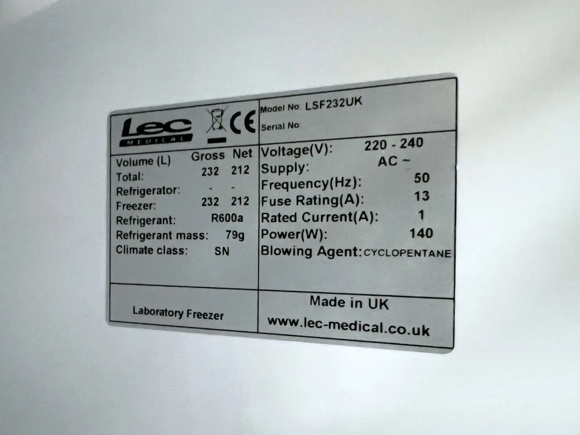 Key Features Of The Lec Medical LSF232UK Laboratory Freezer