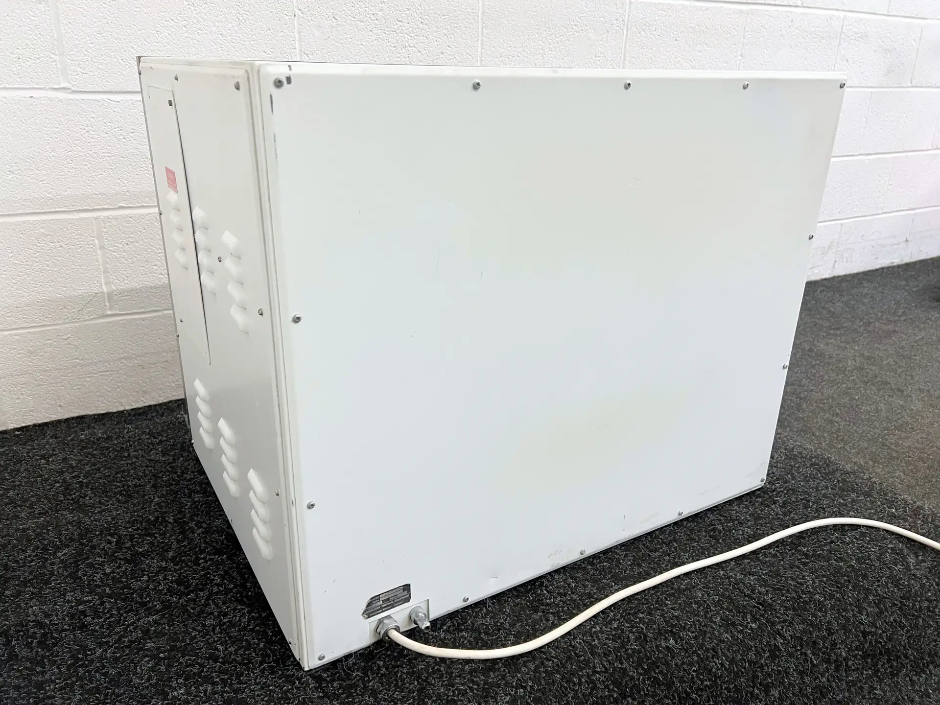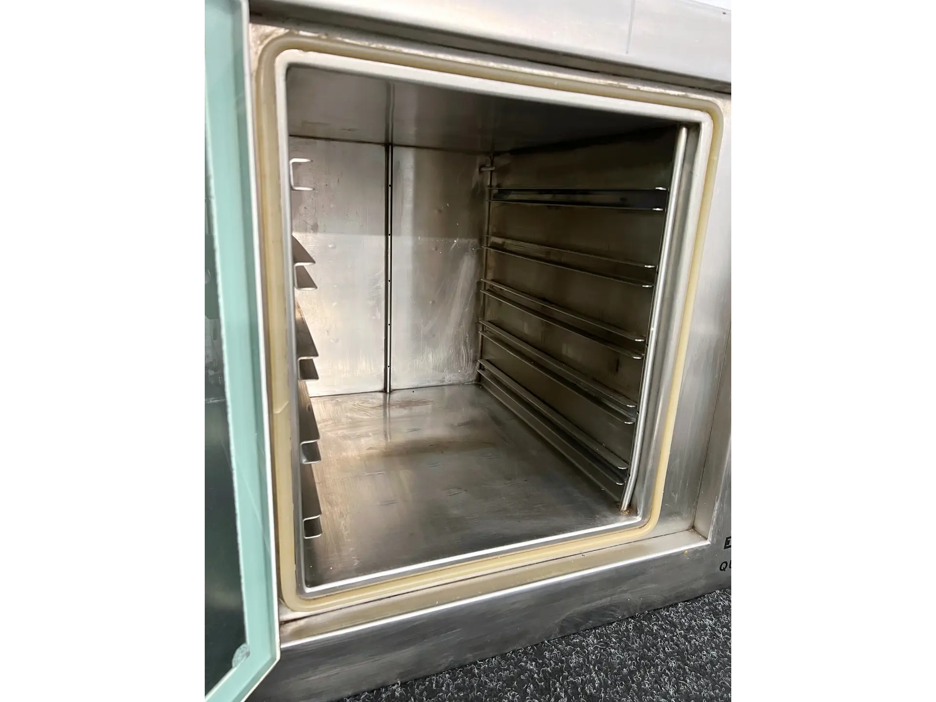 The Qualivac 63 features a robust stainless steel working chamber designed to withstand absolute vacuum. A toughened glass panel door allows the user to see clearly into the chamber. Four electrical heaters (one on each panel) work together to deliver uniform heat distribution and eliminate cold spots. For added safety, the oven incorporates an over-temperature cut-out. The unit reaches a maximum temperature of 100 °C, which users can easily set using the front-mounted control dial. To prevent accidental adjustments, the temperature dial and on/off switch sit securely behind a glass door. The oven includes three adjustable shelves, with an internal chamber measuring 45 × 35 × 40 cm. Externally, the stainless steel housing measures approximately 56 × 71 × 58 cm.