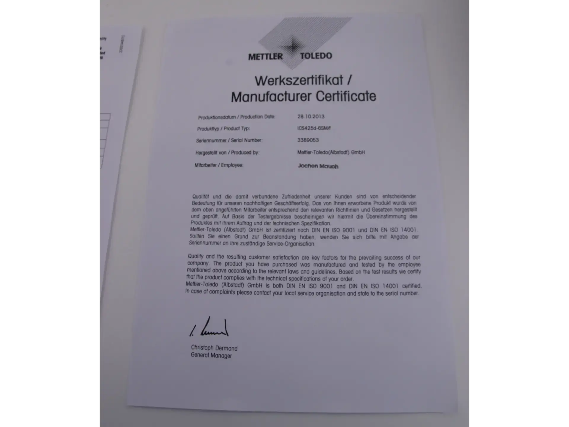 Features of Mettler Toledo ICS 425d-6SM/f Compact Scale: