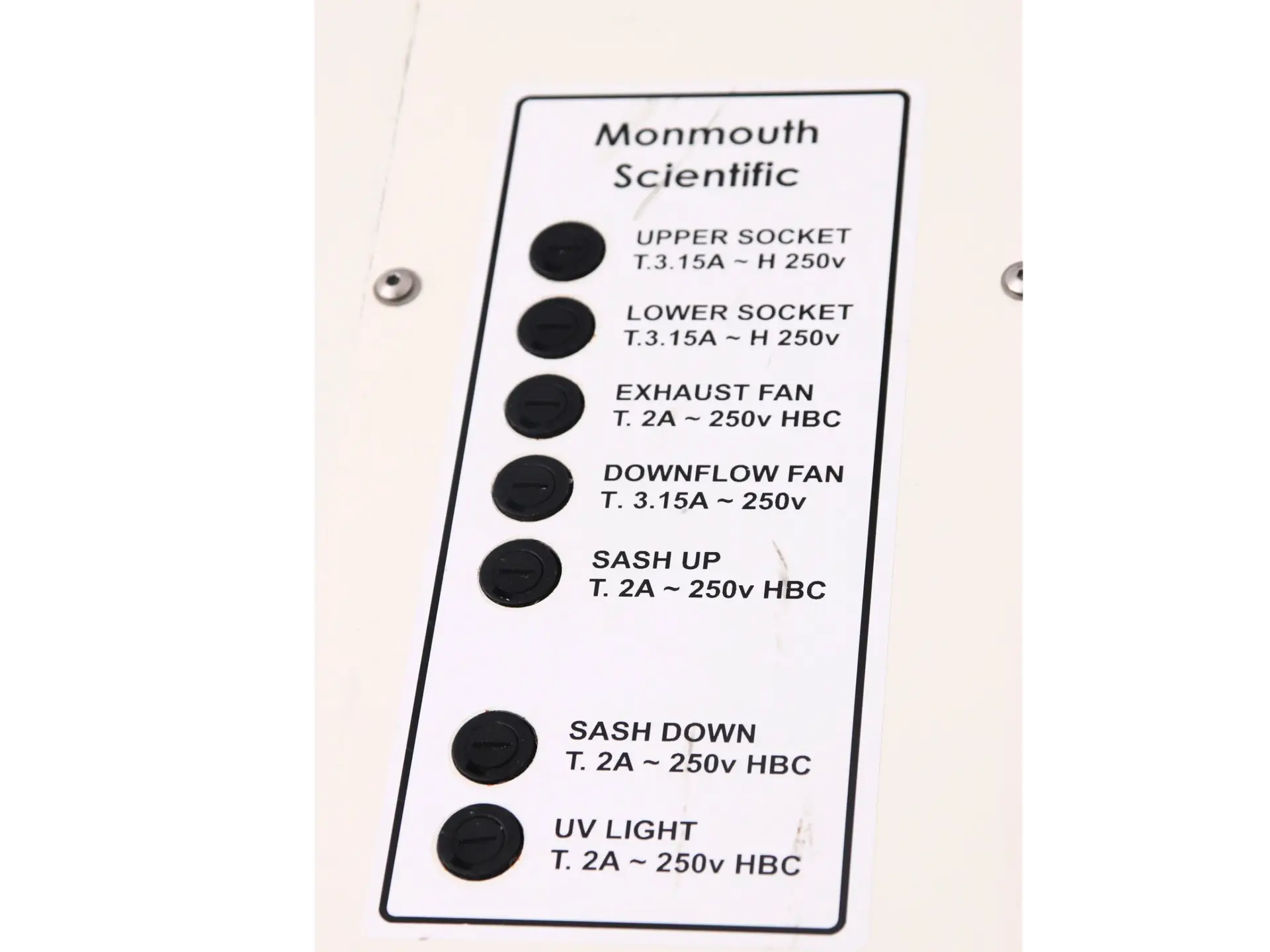 Information Sheet for the Monmouth Guardian MSC1800 Biological Safety Cabinet