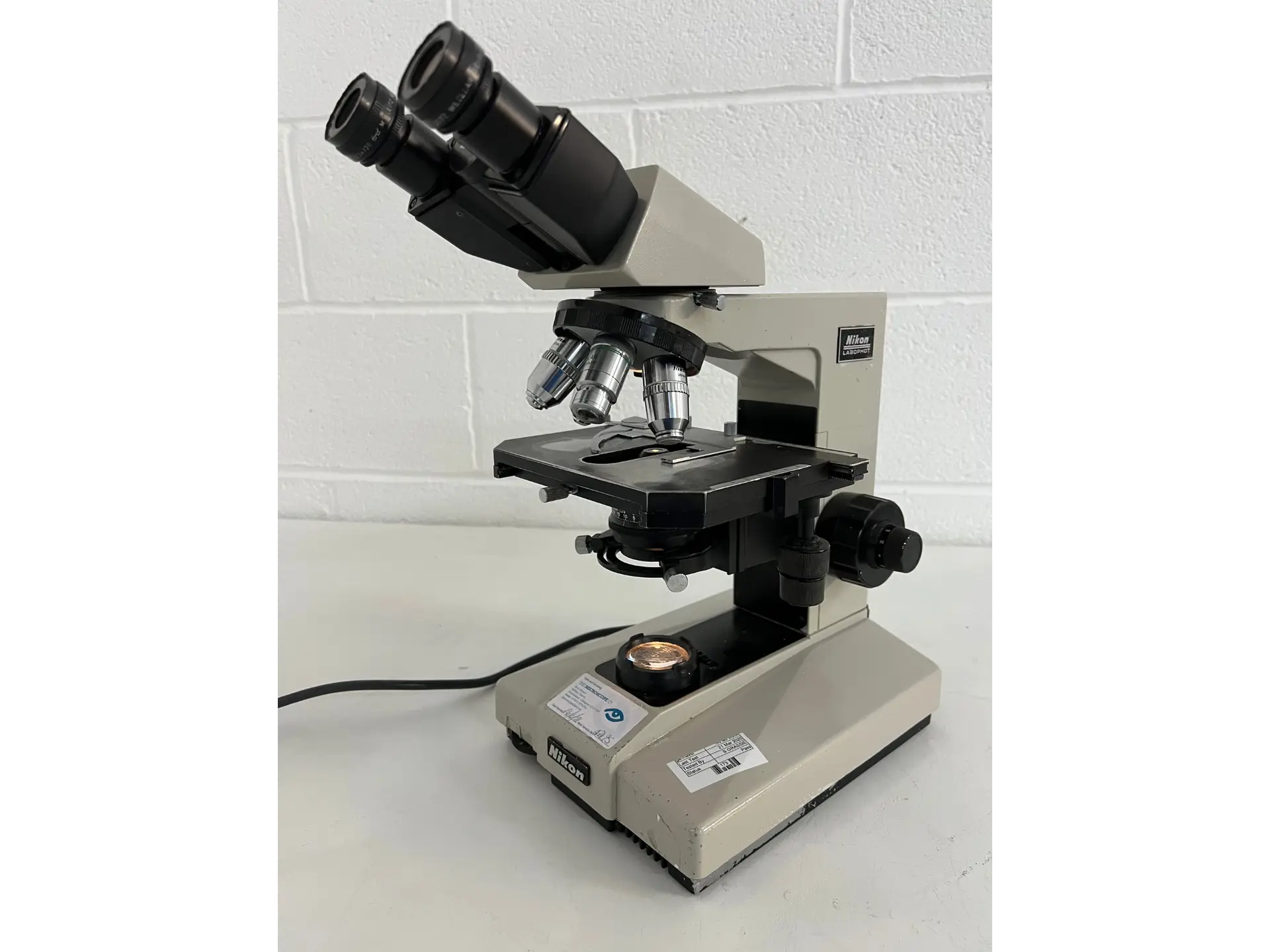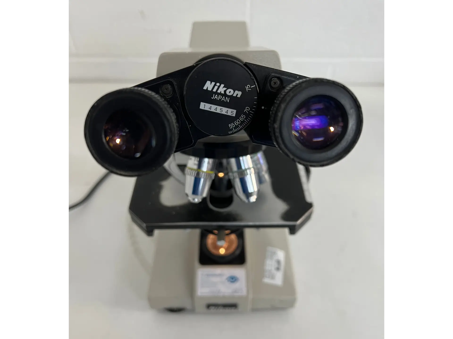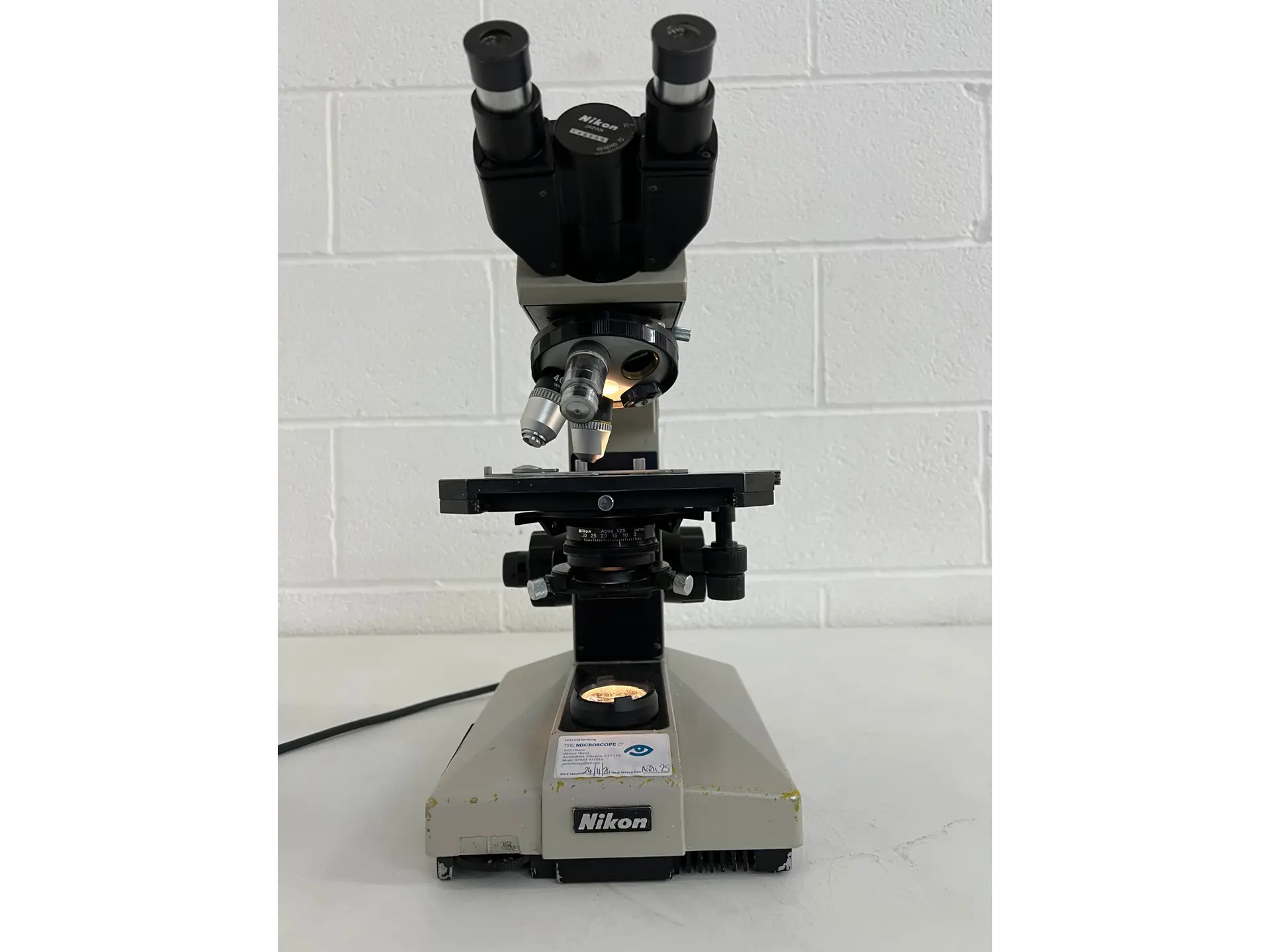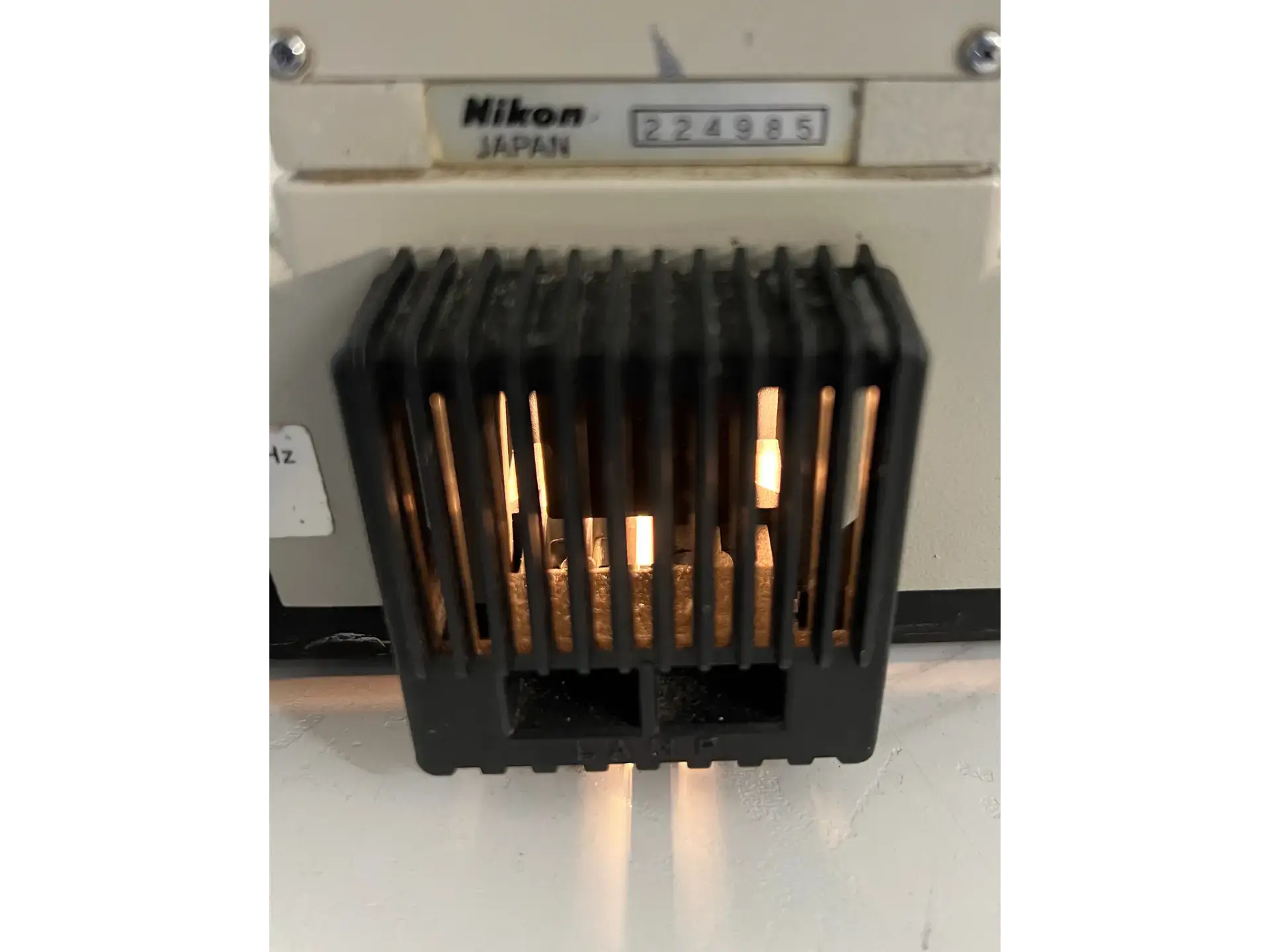 The Nikon Labophot also features an XY mechanical stage, allowing precise, smooth movement of specimens. The coarse and fine focus controls provide accurate focusing capabilities, essential for high-resolution work. A halogen light source ensures bright, even illumination, while the adjustable phase condenser offers versatile lighting modes. Users can switch easily between Phase, Brightfield, and Darkfield settings, making this microscope suitable for a broad range of microscopy techniques.