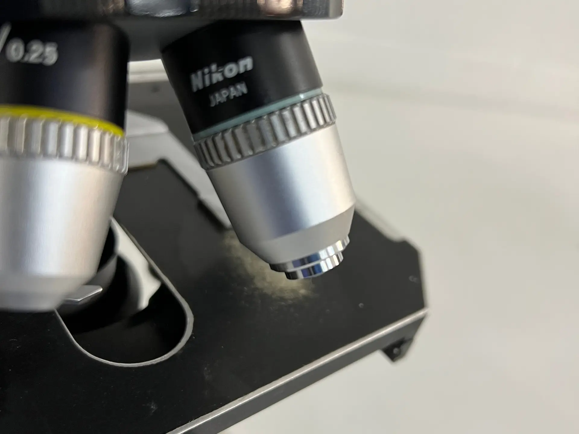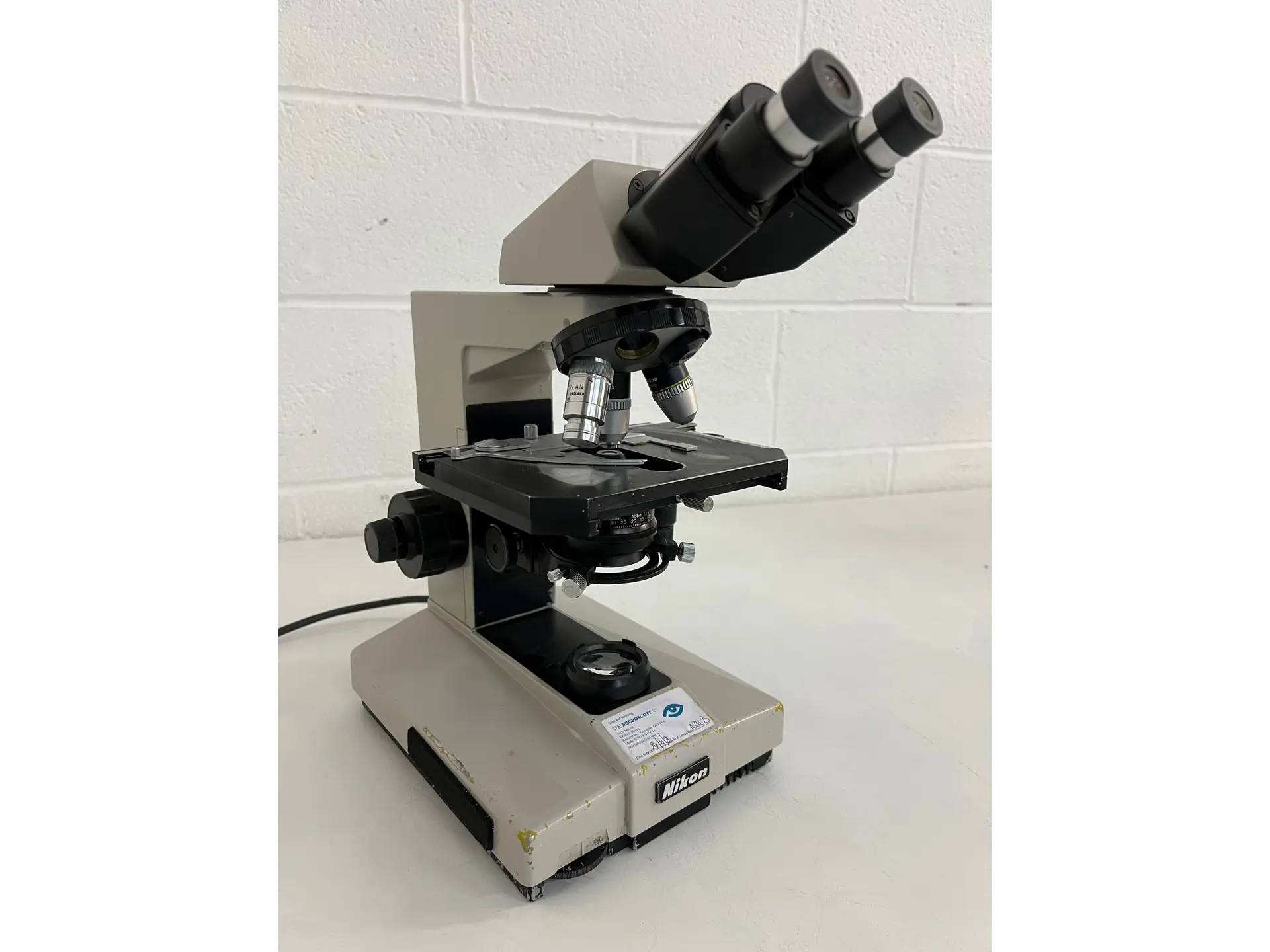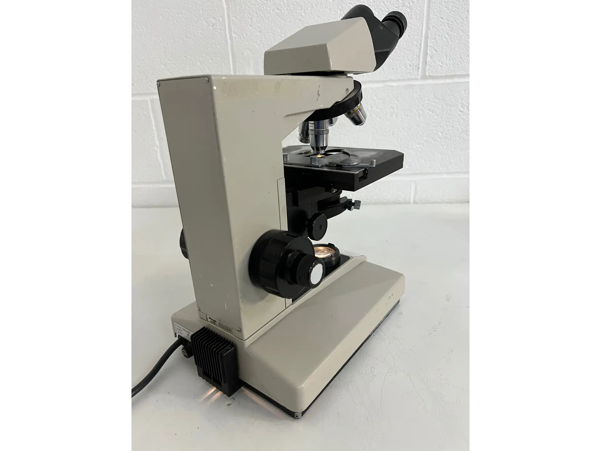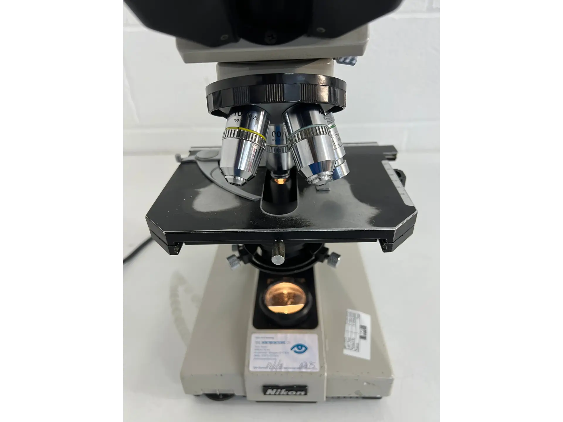 The Nikon Labophot Microscope is a robust, high-precision optical instrument engineered for both routine and advanced laboratory work. Its upright design and binocular viewing head ensure a comfortable and immersive viewing experience, ideal for extended observation sessions. Equipped with a comprehensive range of objectives, the microscope supports detailed visualisation at multiple magnifications. Included are Plan 10/0.25 (yellow), Plan 40/0.65 (blue), Microplan 100/1.25 OIL (white), and Microplan 25/0.5 (green)* objectives. These lenses offer excellent resolution and contrast, with the oil immersion objective (100x) providing particularly fine detail for high-powered analysis.