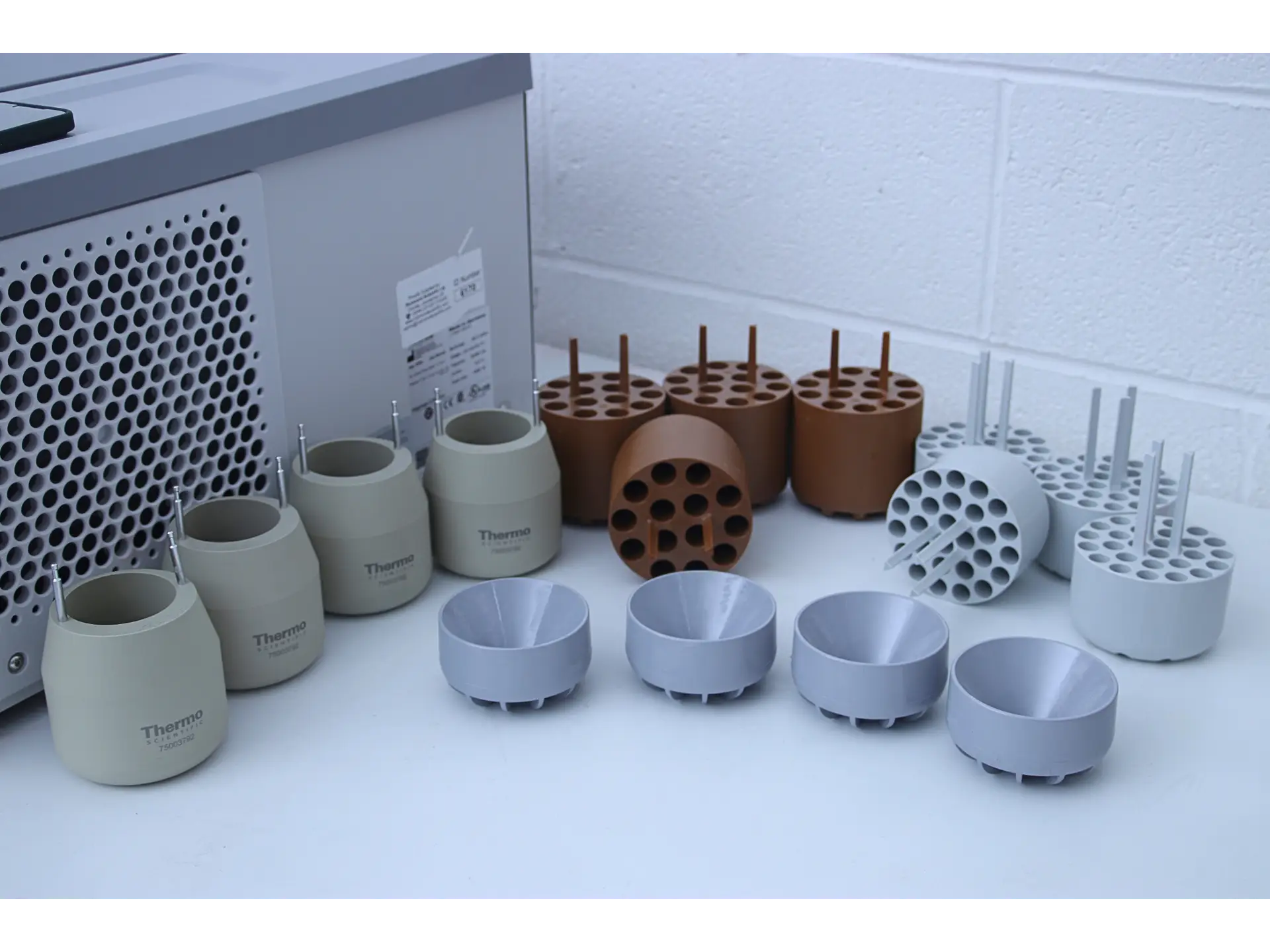 - Capacity: 750ml buckets, 50ml,15ml + 5-7ml inserts and microplates with a max load of 500g