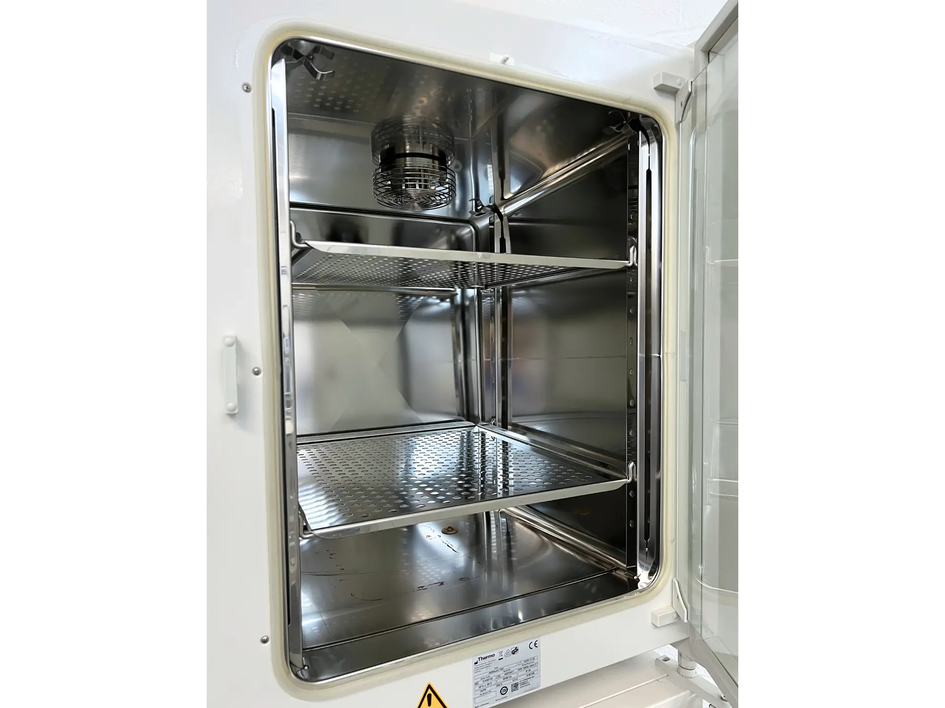 This model includes an electropolished stainless steel chamber, ensuring enhanced durability, resistance to corrosion, and easy maintenance. A 150 litre capacity in each of the incubators provides ample storage for all your samples. An internal fan gently circulates conditioned, humidified air throughout the chamber, ensuring consistent environmental conditions. A directly heated resevoir provides a stable and high relative humidity, and a water level sensor indicates when it is time to refill. The Heracell 150i has an integrated thermal conductivity (TC) sensor for the precise monitoring of chamber conditions.