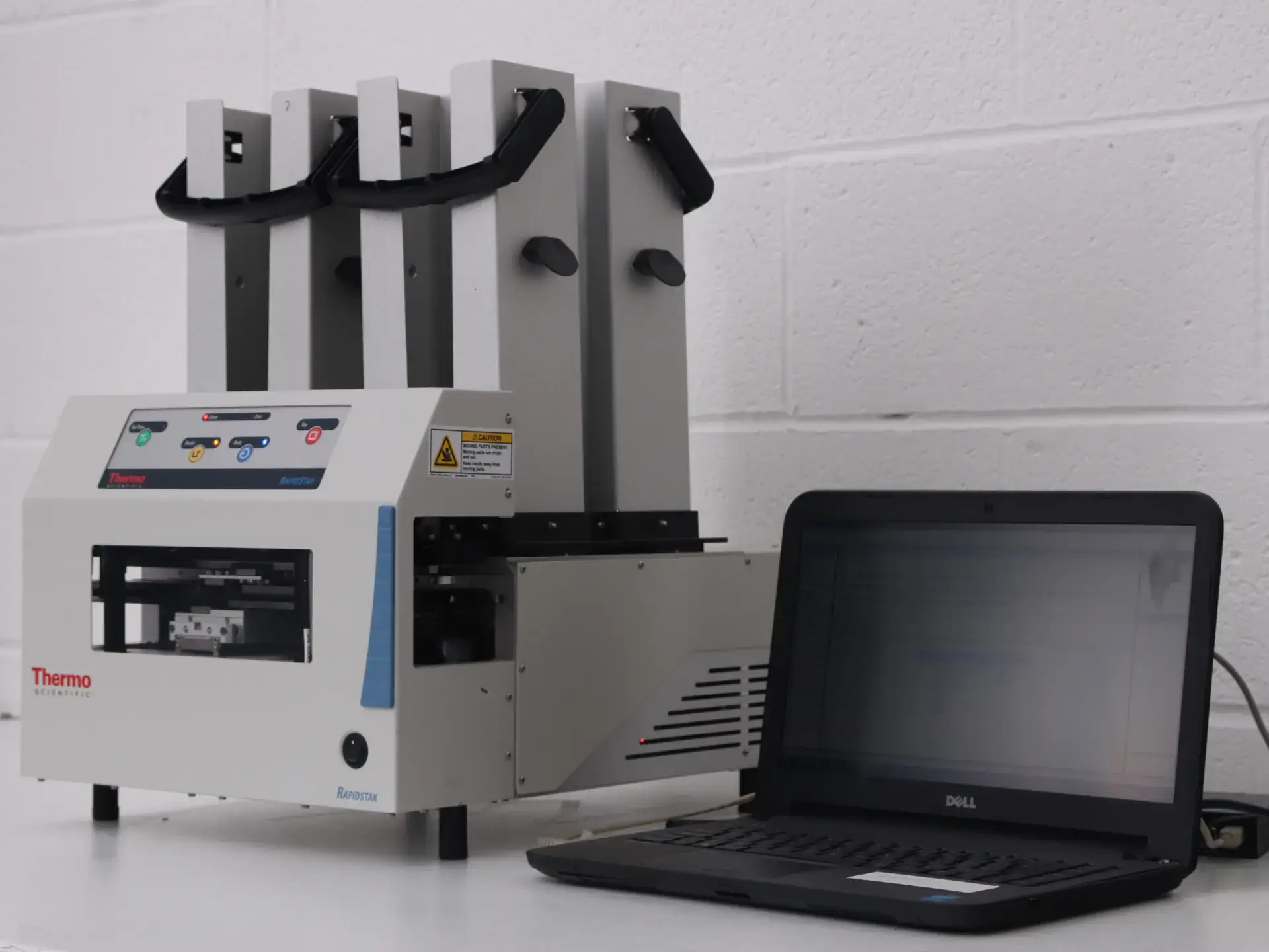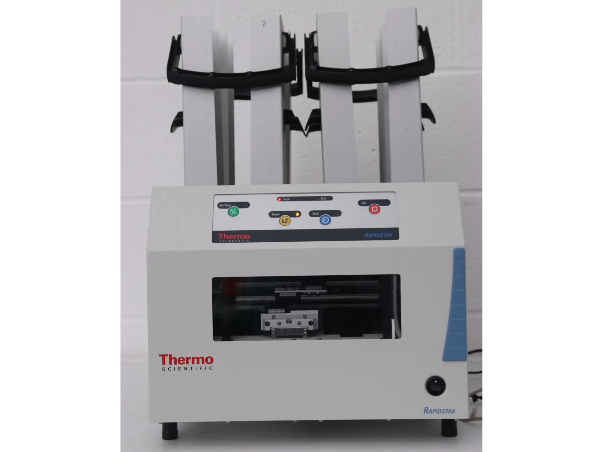 The Thermo Scientific RapidStak 2x is a rapid and flexible microplate stacker, enabling unattended and automated microplate processing, that can be set up in minutes. It features four Staks, tripling capacity up to 150 plates. Dual-instrument loading allows plates to be delivered and processed using two instruments simultaneously.