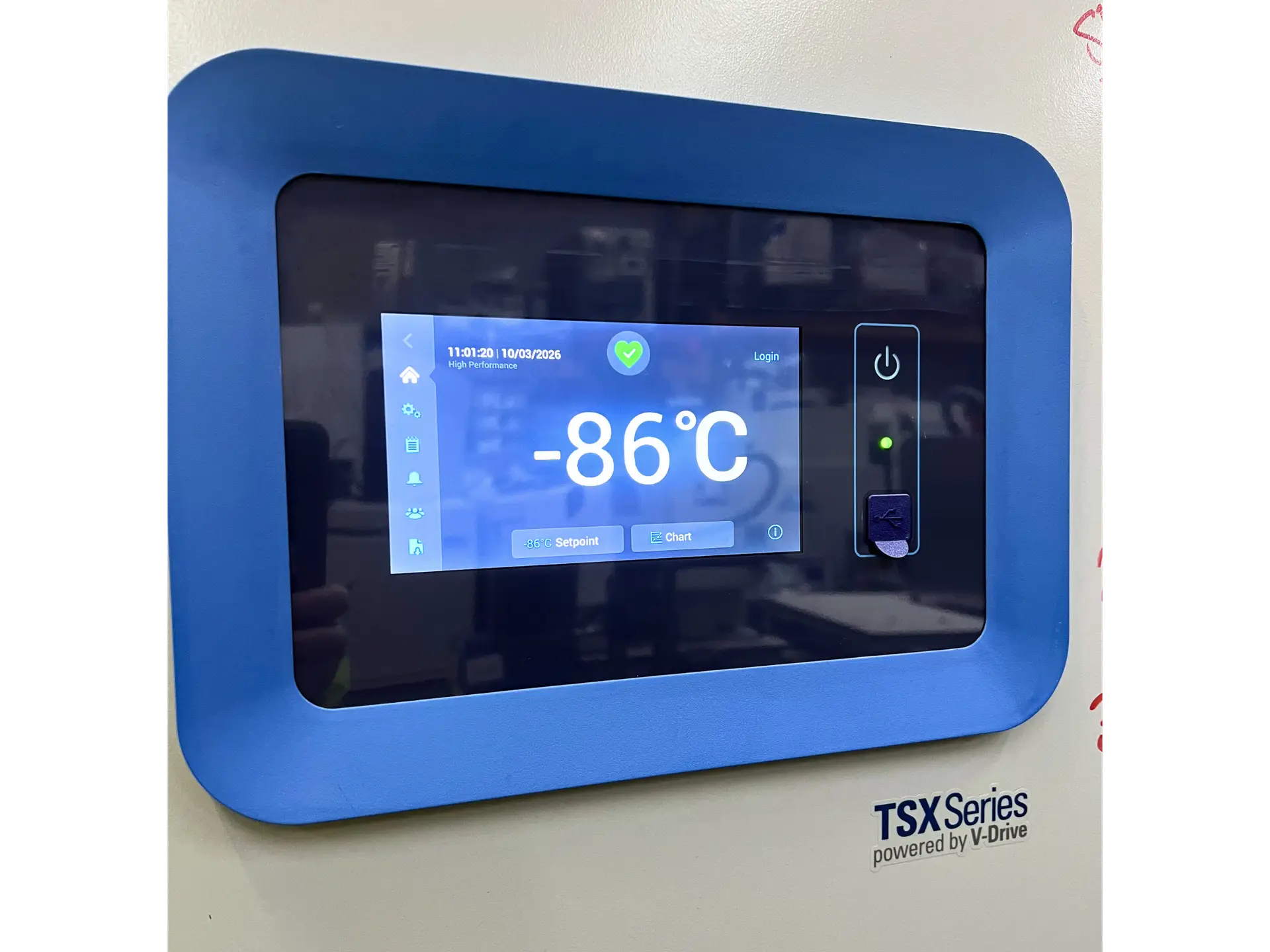 This model features advanced V-Drive technology that actively detects high and low usage patterns, reduces energy consumption, and automatically adjusts compressor speed for optimal performance. The TSX40086V also prioritises user comfort with an ergonomic design: its screen sits at eye level, and shelf-level access eliminates the need to load racks from floor level. A large touchscreen interface clearly displays both set and current temperatures, while built-in datalogging and temperature mapping allow users to export data easily via the integrated USB port.