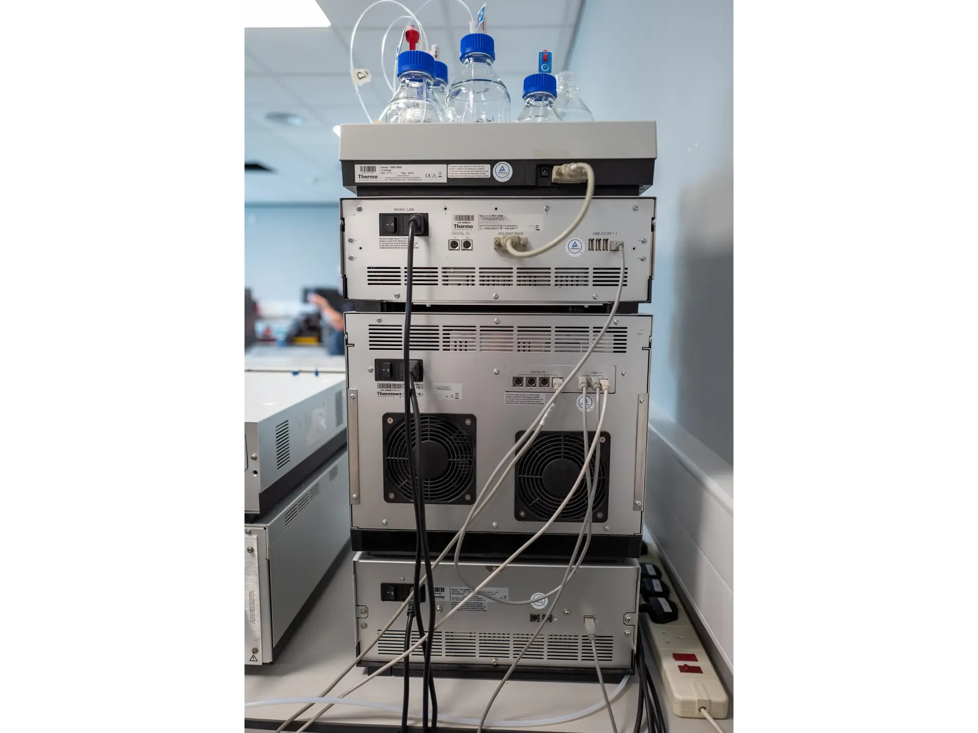 This configuration includes a TSQ Vantage (high perfomance triple quadrupole mass spectrometer) designed with G2 ion optics to deliver more ions and quardopole mass filters to reduce chemical noise. This impressive machine is highly sensitive and can detect minute targets of molecules.